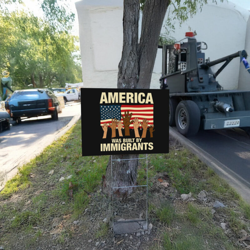 America Was Built by Immigrants Yard Sign Fuck Trump