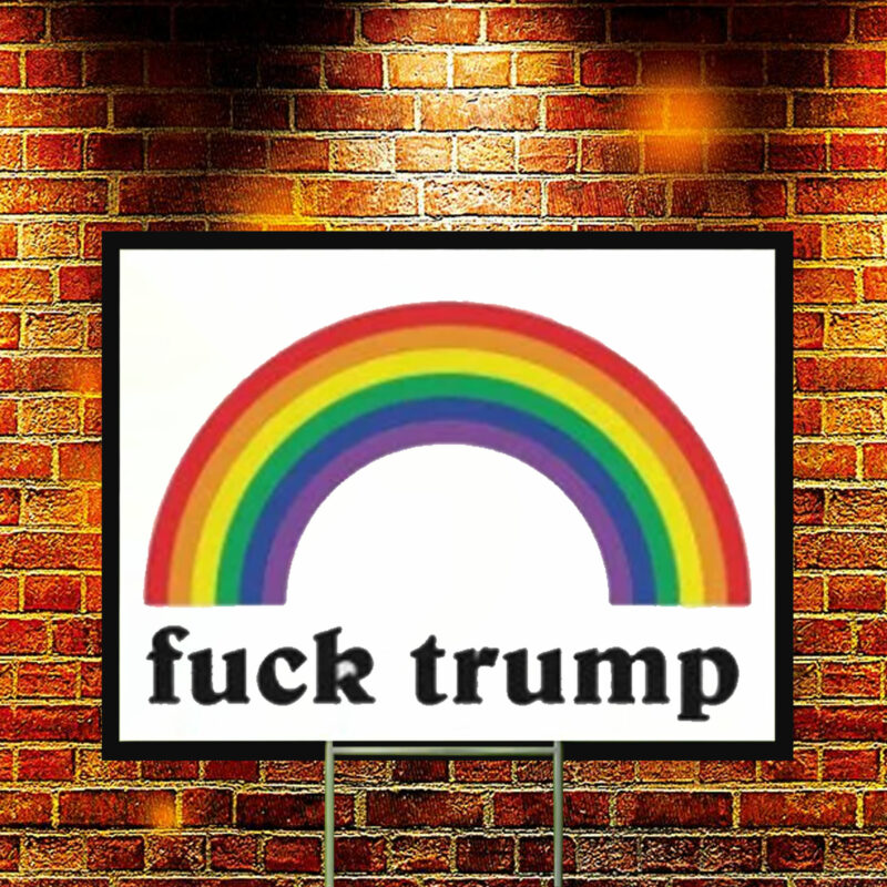 Be the first to review “Fuck Trump Yard Sign – Rainbow” Cancel reply