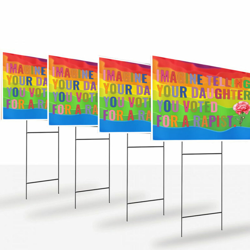Join the fight against sexual violence. Order your “Imagine Telling Your Daughter You Voted For A Rapist” yard sign today and make your voice heard. Together, we can create a world where all women and girls are safe and respected.