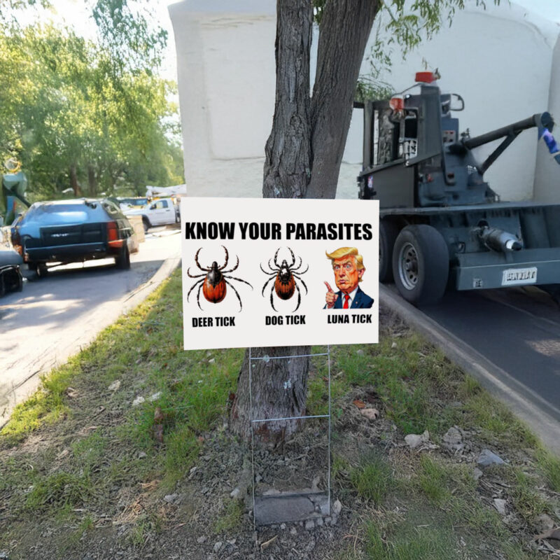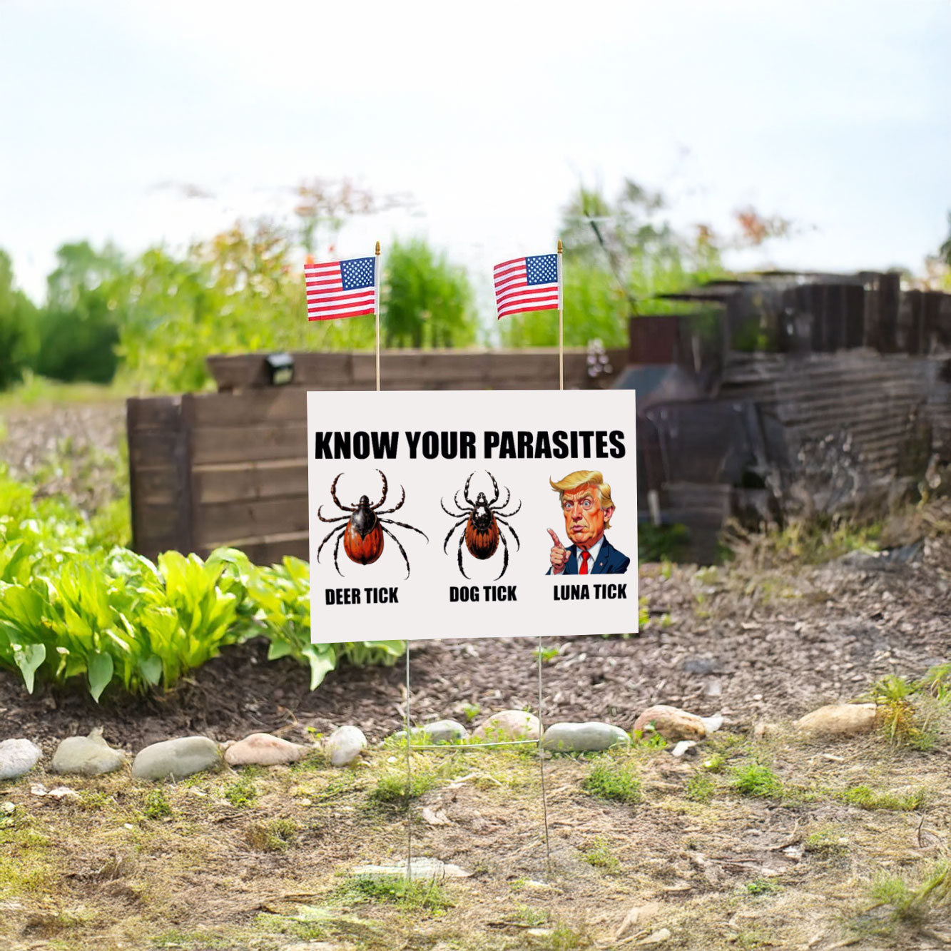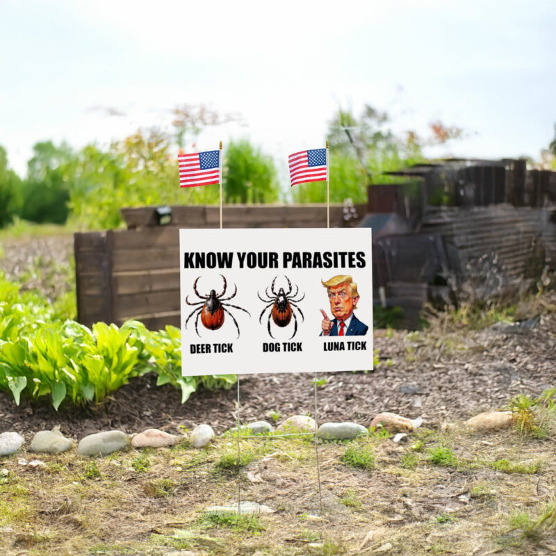 Show your support for the fight against political parasites with our bold and eye-catching “Know Your Parasites” yard sign. This high-quality sign is made from durable materials that can withstand the elements, ensuring your message will be seen loud and clear.